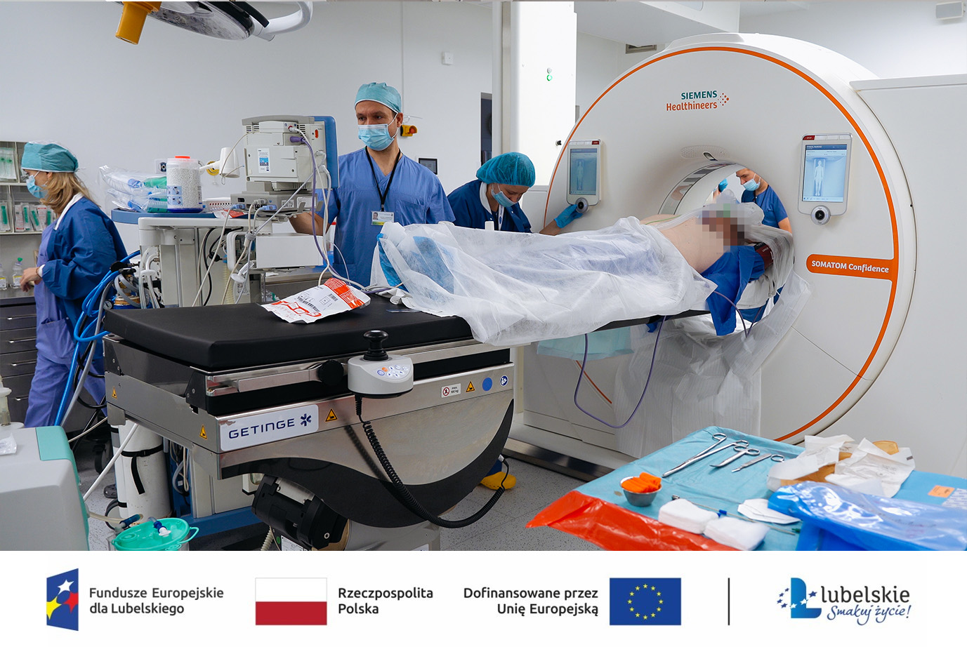 Dzięki inwestycji pracownia została wyposażona w nowoczesny tomograf komputerowy na szynach z opcją obrazowania fluoroskopowego, który umożliwia dokładniejsze planowanie leczenia oraz wyznaczenie ścieżki wprowadzenia aplikatora jeszcze przed rozpoczęciem zabiegu. Nowe wyposażenie obejmuje również całkowicie przezierny stół zabiegowy, system płynnego pozycjonowania aparatu, automatyczną strzykawkę do podawania kontrastu oraz nowoczesne monitory zabiegowe. Pozwala to na lepsze uwidocznienie guza, redukcję artefaktów oraz prowadzenie procedur bez konieczności przemieszczania pacjenta między pomieszczeniami, co zwiększa bezpieczeństwo terapii.